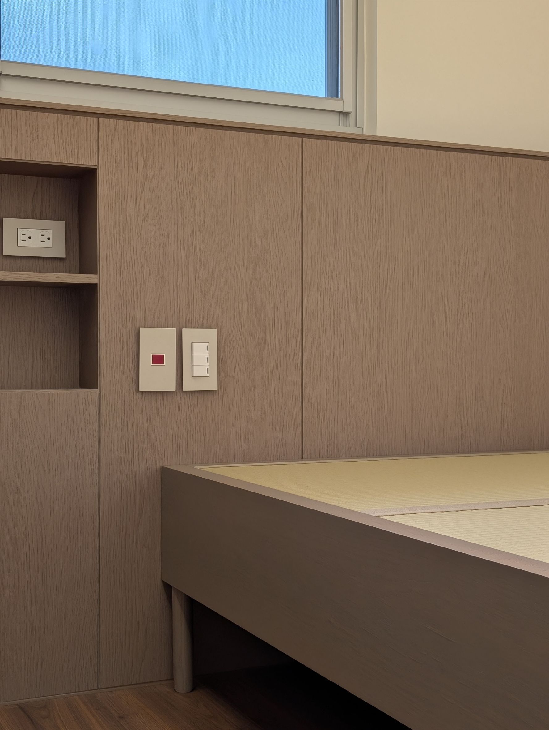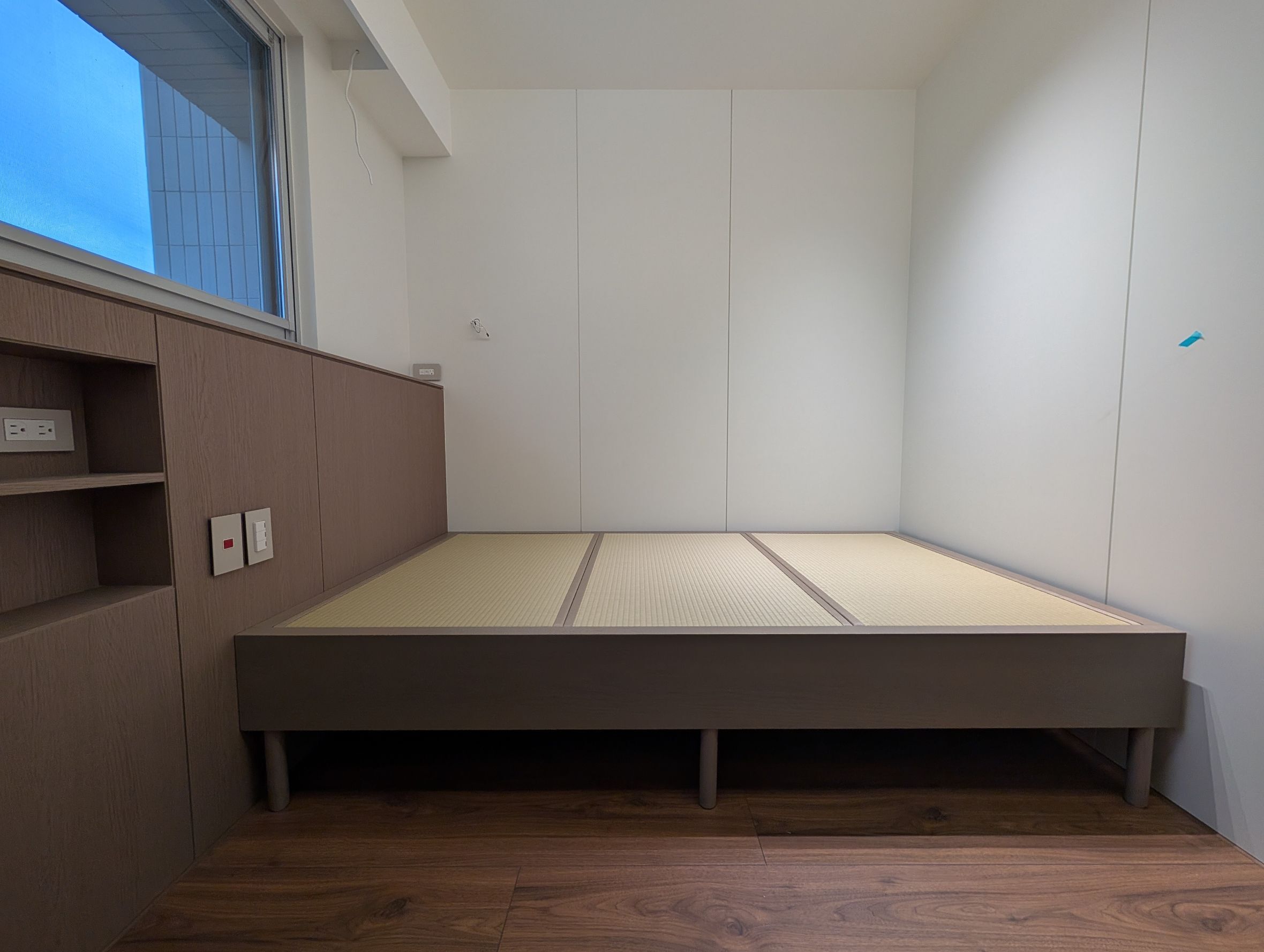 這是一個以日式榻榻米為核心去設計的訂製案件。客人捨棄常見的彈簧或泡棉床墊,改用透氣、天然的榻榻米,讓睡眠環境更乾爽,也更貼近生活本質。