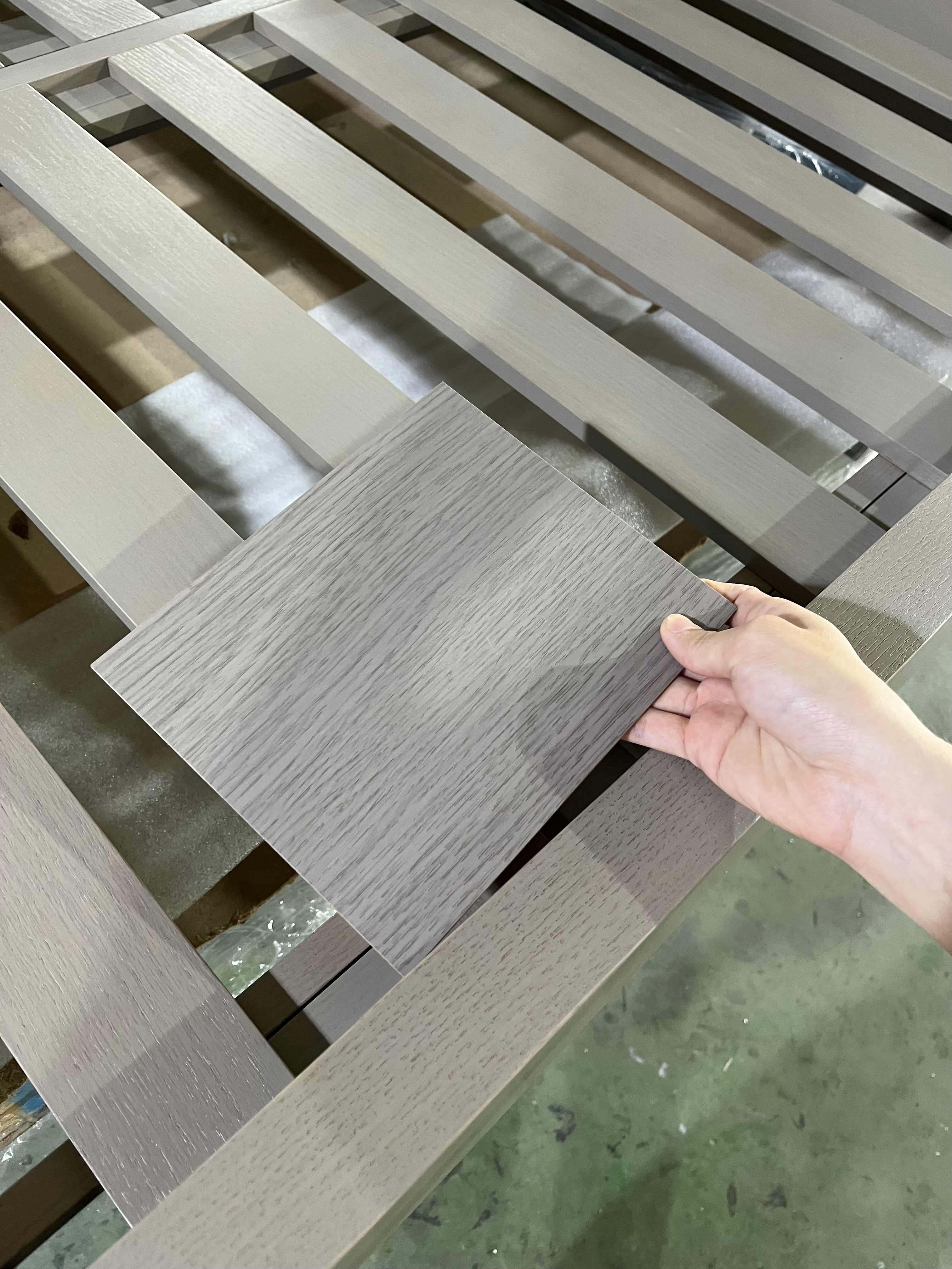 The finish is custom-matched by a professional coating factory based on the client’s selected color. A specialized technique presents a modern tone while preserving the natural wood grain.Instead of covering the surface, it allows the texture of the wood to remain visible and blend with the surrounding space.